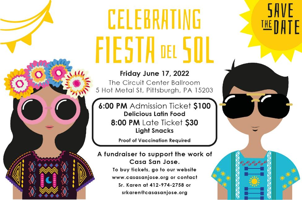 Casa San Jose, Pittsburgh’s Latino Immigrant Resource Center, is set to hold their fourth annual fundraiser, Fiesta del Sol, on Friday, June 17th of 2022. While celebrations of years prior have been held online due to concerns from the pandemic, this year’s celebration is coming back in full force at the The Circuit Center Ballroom, located at 5 Hot Metal Street, Pittsburgh, PA 15203.