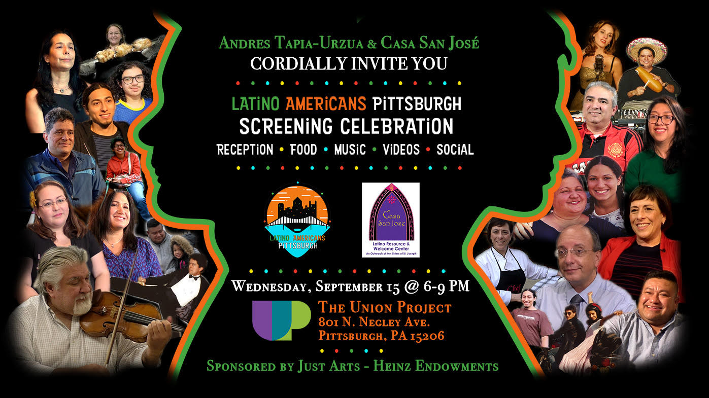El proyecto LATINO AMERICANS PITTSBURGH, dirigido por Casa San José y el videasta Andrés Tapia-Urzua, y patrocinado por Heinz Endowments Just Arts, llevará acabo una celebración presentando los videos del documental el 15 de septiembre en The Union Project.