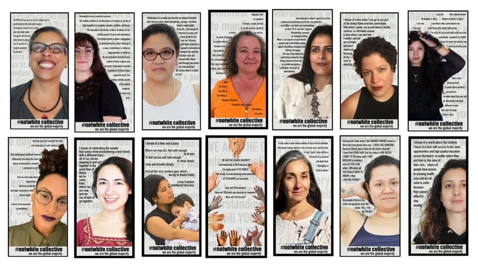 En 2016, trece mujeres multiculturales de Pittsburgh se unieron para formar un colectivo con la misión de utilizar el arte multidisciplinario para hacer visibles sus historias a medida que se relacionan, conectan y pertenecen a la mayoría global. Lo llaman el #notwhite Collective.