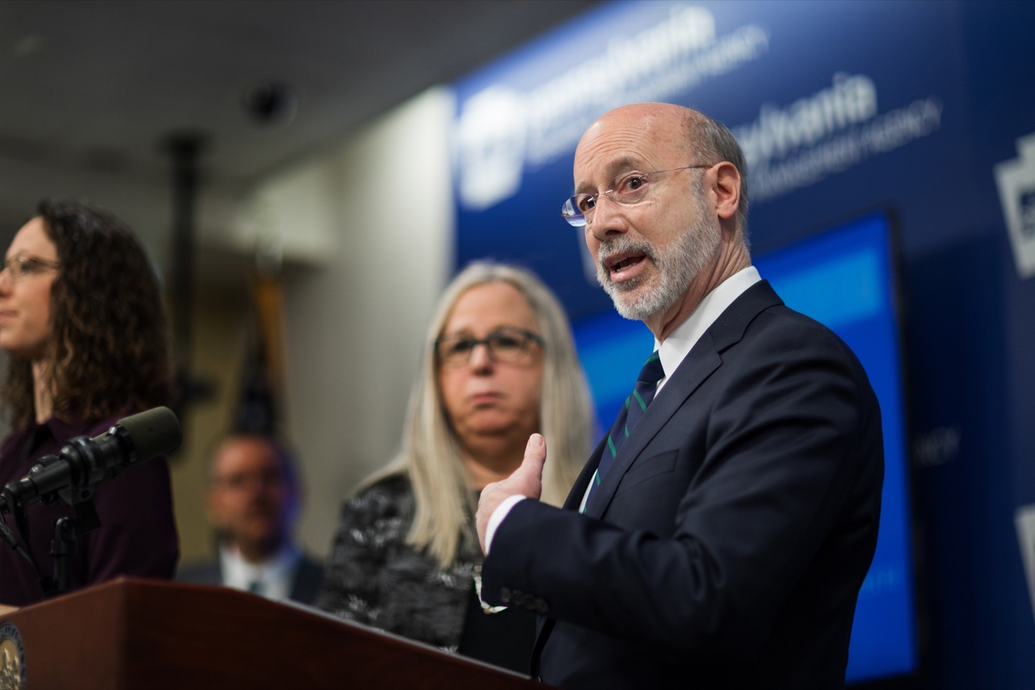 En marzo, Wolf comenzó a emitir órdenes de quedarse en casa para los residentes de los condados más afectados, ordenándoles que solo salieran de casa para cubrir necesidades como alimentos y medicinas. Wolf extendió esa orden a todo el estado el 1 de abril. El gobernador también ordenó a todas las empresas, excepto “las que son vitales”, a dejar de operar en marzo.