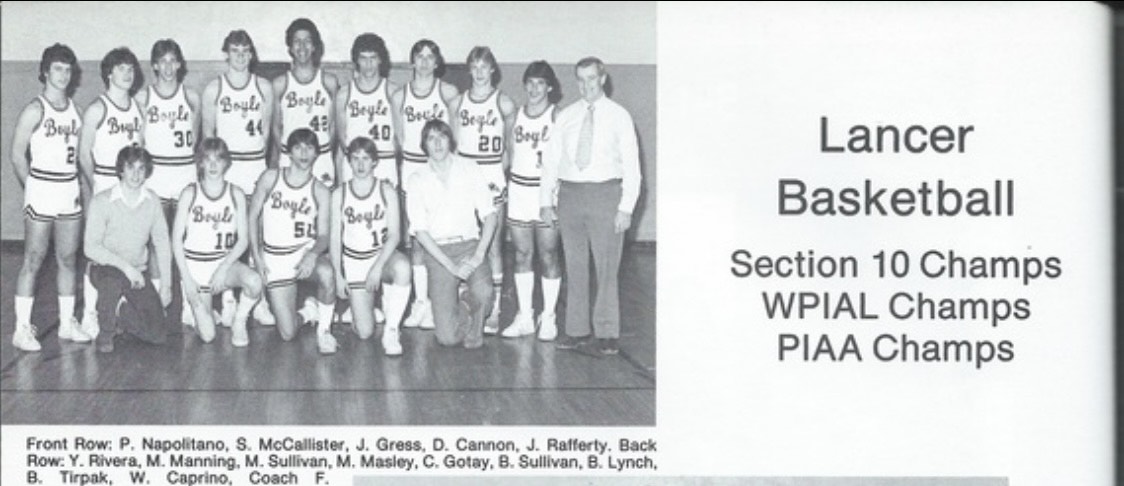 He played on the Bishop Boyle basketball team for two years. The first year, they were one game short of making the WPIAL finals. The second year, they made an exciting comeback.